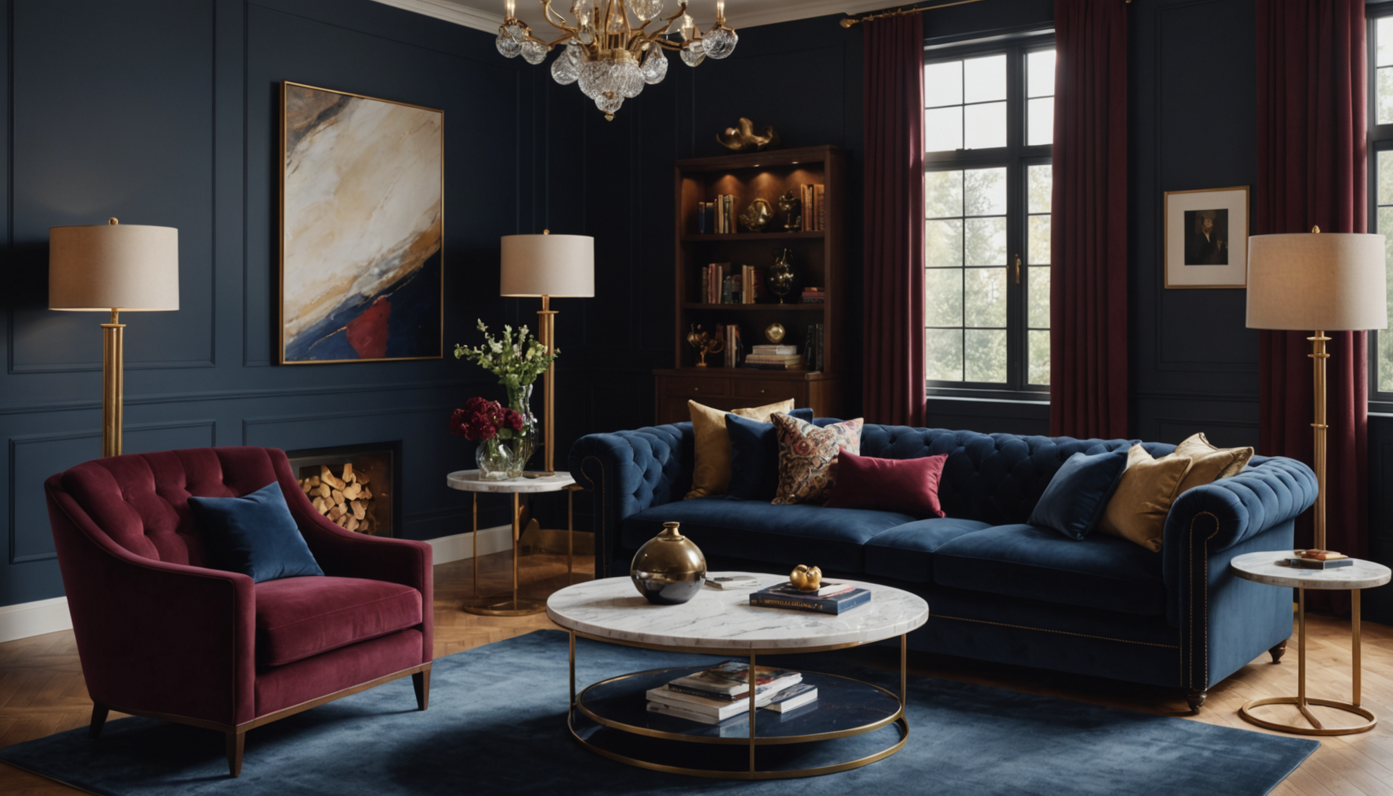 | Classique intemporel | Bleu marine, bordeaux, taupe | Velours côtelé, cuir capitonné | Bois noble, laiton, marbre |